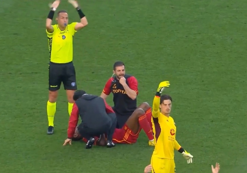 Кошмарен инцидент видяха феновете по време на шампионатния мач в Италия между Рома и Удинезе.